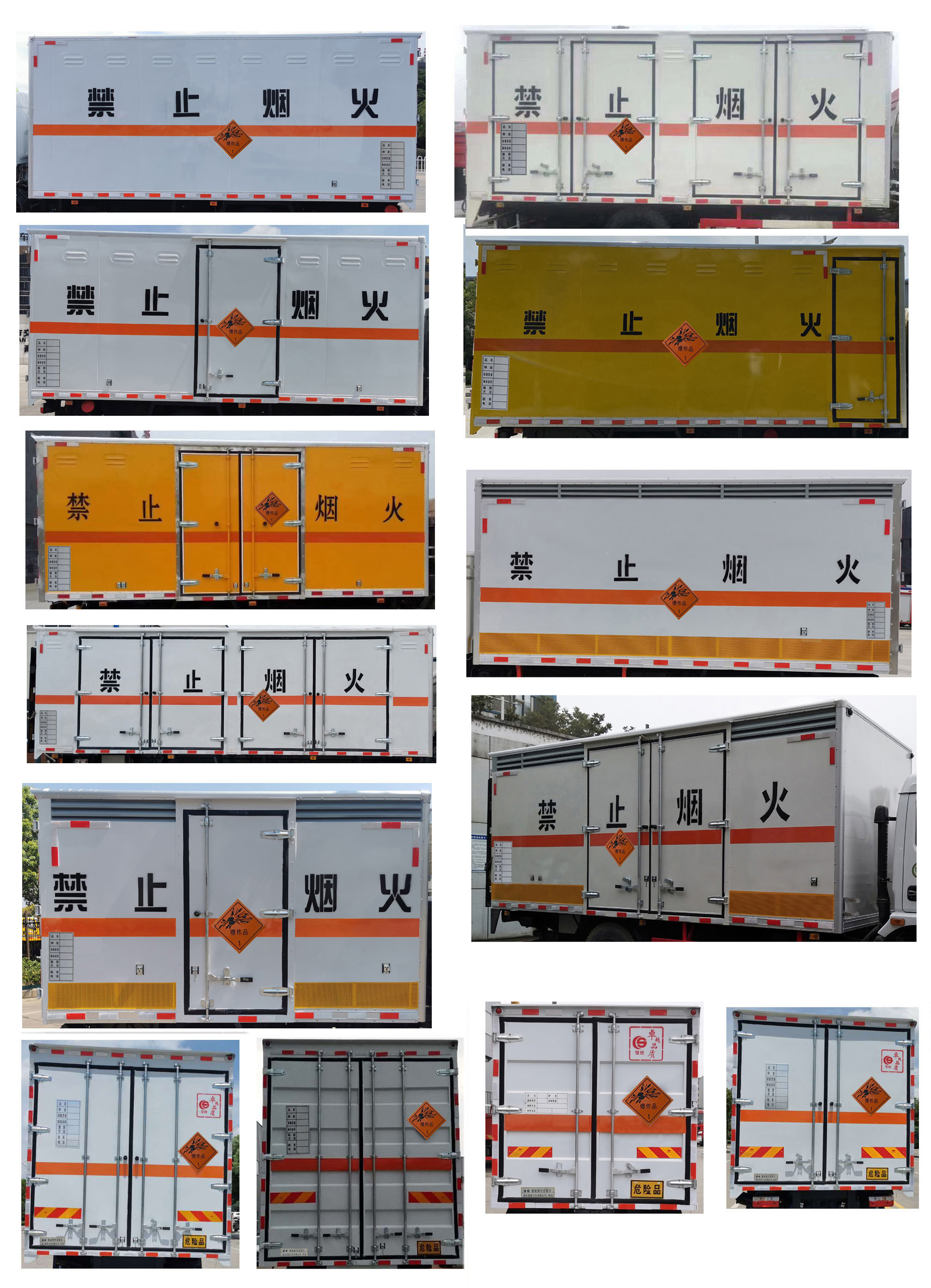 配置  1、該車適用于運(yùn)輸危險(xiǎn)品。運(yùn)輸具有**容器(瓶)包裝的物品,EX/Ⅲ型車輛,危險(xiǎn)貨物類項(xiàng)號:1.1B,1.1G,1.3C,1.1D,1.2D,1.3C,1.1C,1.4G。廂體頂部封閉不可開啟。2、側(cè)/后防護(hù)材料為Q235,側(cè)防護(hù)螺栓連接,后防護(hù)焊接,截面尺寸(mm)120×50,下邊緣離地高490mm。3、隨底盤選裝駕駛室前面罩,選裝側(cè)窗玻璃;駕駛室頂部中間三個裝飾燈為選裝件;前霧燈為選裝件;駕駛室前臉擾流罩為選裝件。僅選用排氣管前置、限速裝置(限速80km/h)、前輪盤式制動及子午線輪胎的底盤;轉(zhuǎn)向輪安裝輪胎爆胎應(yīng)急防護(hù)裝置。后軸采用空氣懸架。安裝帶有衛(wèi)星定位功能的行駛記錄儀,EBS型號/生產(chǎn)廠家:EBS3/威伯科(上海)管理有限公司。發(fā)動機(jī)與油耗值(L/100Km)對應(yīng)關(guān)系為: B6.2NS6B210/26.5,DDi50E190-60/23.9。整車外形長/軸距/前懸/后懸的對應(yīng)關(guān)系為(mm):8650/4700/1430/2520,9050/5000/1430/2620,9250/5000/1430/2820,10000/5800/1430/2770。4、該車型可選裝ETC車載裝置。廂體側(cè)面選裝開門型式及位置,選裝不帶側(cè)開門,選裝瓦楞板結(jié)構(gòu);廂體側(cè)面板選裝開百葉窗。