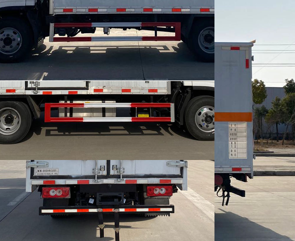 | 配置 | 該車為危險品運輸車,運輸具有**容器(瓶)包裝的物品,運送危險物品類項號:4.1,4.2,4.3。廂體頂部封閉,不可開啟。側(cè)后防護材料均為Q235,螺栓連接,后防護截面尺寸(mm)100×50,下邊緣離地高450mm。選裝后部尾板,選裝后部尾板時后防護材料為Q235,螺栓連接,截面尺寸(mm)φ100,下邊緣離地高450mm。廂體選裝側(cè)開門及位置或無側(cè)門、選裝后門雙拉桿,廂體選裝瓦楞板結(jié)構(gòu),選裝百葉窗。僅選用排氣管前置、限速裝置(限速80km/h)、前輪盤式制動及子午線輪胎的底盤;轉(zhuǎn)向輪裝備輪胎爆胎應(yīng)急防護裝置。安裝帶有衛(wèi)星定位功能的行駛記錄儀。ABS型號/生產(chǎn)廠家:ABS-E/威伯科汽車**系統(tǒng)(**)有限公司,ABS-VI·E/廣州瑞立科密汽車電子股份有限公司,YF8/武漢元豐汽車電控系統(tǒng)有限公司。發(fā)動機/油耗值(L/100Km)對應(yīng)關(guān)系為: F2.8NS6B131/11.47,Q28-130E60/11.02。尾板收起狀態(tài)水平長度為280mm,尾板質(zhì)量為350kg。選裝ETC。 | ||