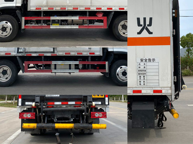 | 其它: | 1、該車為危險品運輸車,運輸具有獨立容器(瓶)包裝的物品,運送危險物品類項號:9。廂體頂部封閉,不可開啟。2、側(cè)、后防護材料均為Q235,螺栓連接,后防護截面尺寸(mm)Φ100,下邊緣離地高390mm。選裝后部無尾板時,后防護材料為Q235,螺栓連接,截面尺寸(mm)120×60,下邊緣離地高400mm。尾板收起狀態(tài)水平長度為280mm,尾板質(zhì)量為350kg。3、整備質(zhì)量含備胎,滅火器及隨車工具;貨廂重量為1050kg;材質(zhì)/厚度:復合板結(jié)構廂體:底板材質(zhì)為Q235,厚度4mm,側(cè)板為外Q235+中間阻燃泡沫+內(nèi)純鋁板,厚度42mm;瓦楞板結(jié)構廂體:底板材質(zhì)為Q235,厚度4mm,側(cè)板為Q235,厚度1.5mm。4、僅選用排氣管前置、限速裝置(限速80km/h)、前輪盤式制動及子午線輪胎的底盤,轉(zhuǎn)向輪安裝輪胎爆胎應急防護裝置。安裝帶有衛(wèi)星定位功能的行駛記錄儀。ABS系統(tǒng)控制器型號/生產(chǎn)企業(yè): :YF8/武漢元豐汽車電控系統(tǒng)有限公司,ABS-E/威伯科汽車控制系統(tǒng)(中國)有限公司,ABS-VI·E/廣州瑞立科密汽車電子股份有限公司,YF9/武漢元豐汽車電控系統(tǒng)有限公司。發(fā)動機/油耗值(L/100km)對應關系為: D20TCIF2/11.22,D25TCIF1/11.16, D20TCIF1/11.22。僅選用3360mm軸距,選裝ETC。廂體側(cè)面選裝開門型式及位置,選裝不帶側(cè)開門,選裝瓦楞板結(jié)構;廂體前后及側(cè)面選裝開百葉窗,選裝后尾板樣式,選裝無后尾板。 |