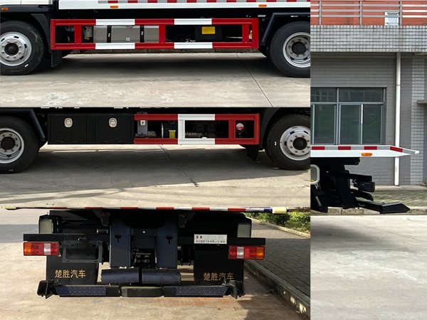 配置  該車(chē)主要用于道路清障,主要專(zhuān)用裝置為平板、托臂、絞盤(pán)、鋼絲繩、油缸。托舉質(zhì)量5000kg。側(cè)防護(hù)材料為Q235,螺栓連接,后防護(hù)由專(zhuān)用裝置代替,下緣離地高430mm。ABS型號(hào)/生產(chǎn)企業(yè):XH-KQ4S4M-E01/廣州市西合汽車(chē)電子裝備有限公司,CM4XL-4S/4M/廣州瑞立科密汽車(chē)電子股份有限公司,VIE ABS-Ⅱ/生產(chǎn)企業(yè)為浙江萬(wàn)安科技股份有限公司。隨底盤(pán)選裝前面罩,選裝駕駛室,選裝后視鏡,選裝鋁合金輪輞。僅采用軸距4500mm。