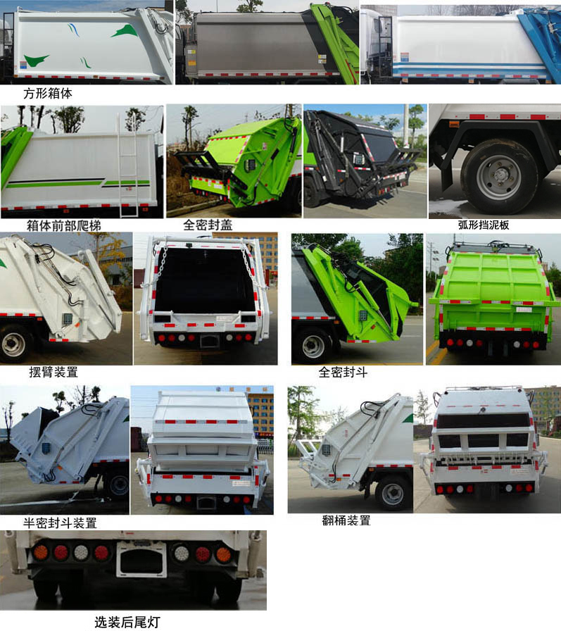 | 配置 | 1、該車主要專用裝置由箱體、壓縮系統(tǒng)組成,用于垃圾的收集與清運(yùn)。該車可選裝方形或弧形箱體,選裝全密封蓋裝置,選裝方形擋泥板,選裝箱體前部爬梯,選裝后部工作裝置。選裝工作裝置時,外形長(mm)/后伸(mm)/整備質(zhì)量(kg)對應(yīng)關(guān)系:①無上料裝置: 6525/-/5530;②擺臂裝置: 6685/160/5850;③全密封斗裝置:6725/200/5850;④翻桶裝置,半密封斗裝置:6925/400/5850。2、側(cè)防護(hù)采用冷彎型鋼/Q235,螺栓連接;后防護(hù)由專用裝置替代,下邊緣離地高500mm。3、ABS系統(tǒng)型號:VIE ABS-II,ABS系統(tǒng)生產(chǎn)廠家:浙江萬安科技股份有限公司。發(fā)動機(jī)JX4D30D6H的油耗值為13.9 L/100km。隨底盤選裝左右車門上方黑色貼膜可選擇取消。選裝輪輞外觀。選裝前臉、前部燈具。該車型可選裝ETC車載裝置. | ||