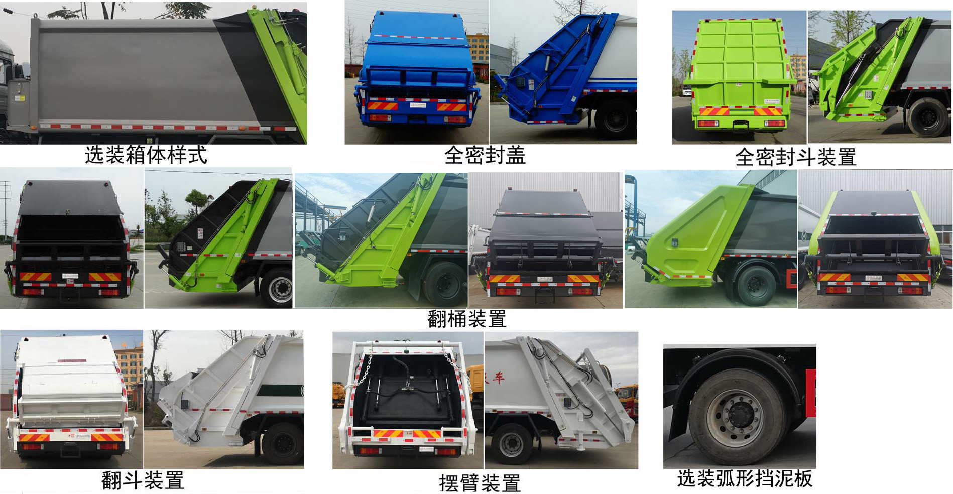 | 配置 | 1、該車主要專用裝置由箱體、壓縮系統(tǒng)組成,用于垃圾的收集與清運。該車可選裝方形或弧形箱體,選裝全密封蓋裝置,選裝方形擋泥板。選裝后部工作裝置。選裝工作裝置時外形長/后伸對應(yīng)關(guān)系為(mm):①無上料裝置:8680/-;②全密封斗裝置和擺臂裝置:8880/4500/200;③翻桶裝置和翻斗裝置:9080/400。僅采用4500mm軸距。2、側(cè)防護(hù)采用冷彎型鋼/Q235,螺栓連接;后防護(hù)由專用裝置替代,下邊緣離地高:500mm。3、隨底盤選裝前圍和燈具,選裝寬體保險杠,腳踏板。安裝帶有衛(wèi)星定位功能的行駛記錄儀。ABS系統(tǒng)生產(chǎn)廠家:長春瑞立科密汽車電子有限公司,型號:CM4XL。采用的發(fā)動機與油耗值對應(yīng)關(guān)系為(L/100Km):CA4DK1-22E6/25.6,CA4DK1-18E6/25.6,CA6DH1-24E6/26.92。 | ||